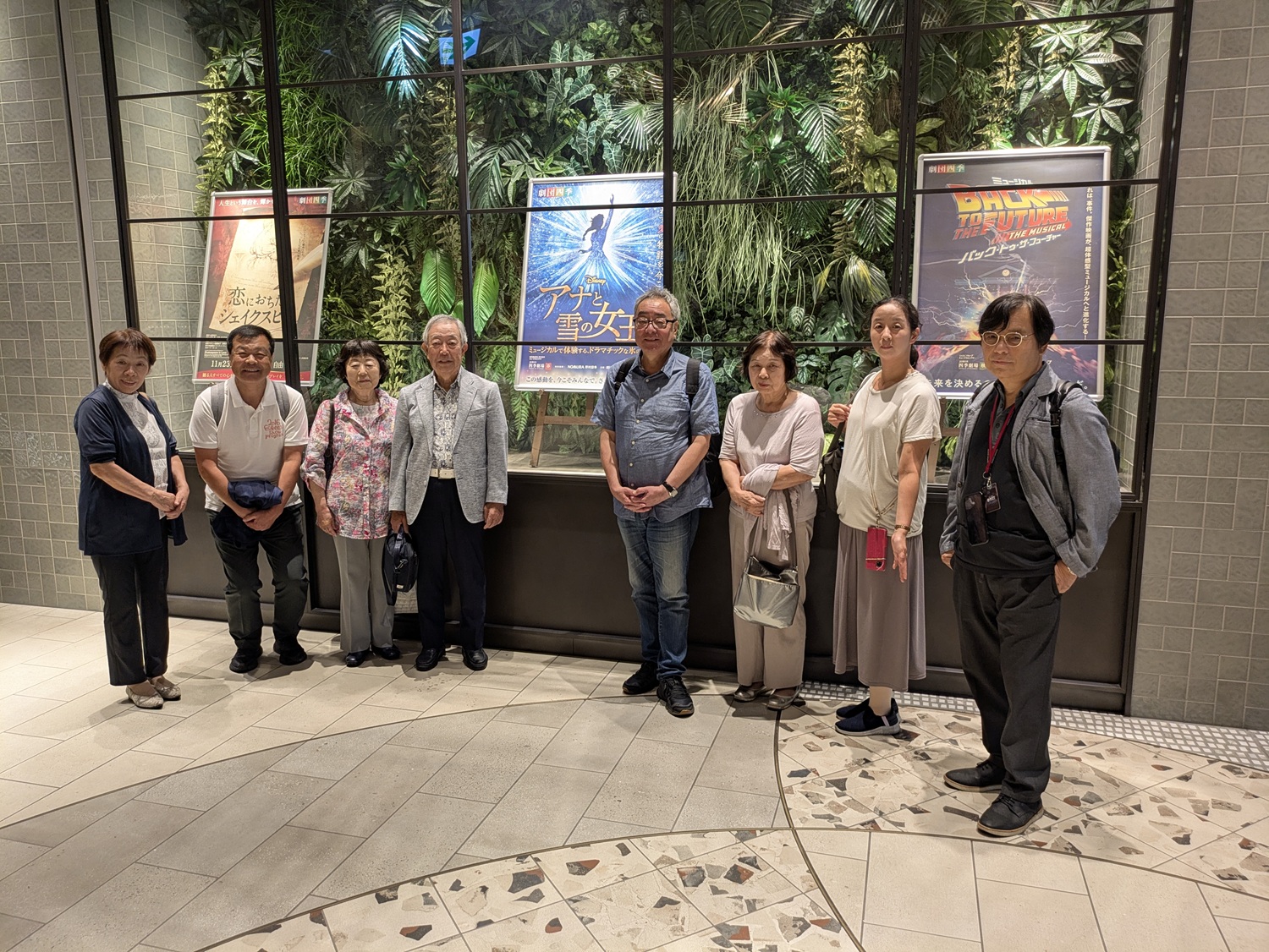 「演劇を知る会」は今回で4回目を迎え、会員の皆さまの関心も高まり、ますます充実した活動となっています。今回は、劇団四季のミュージカル『アナと雪の女王』を鑑賞しました。参加者は総勢9名。開演前から、ドキドキワクワク、皆の胸は期待で高鳴ります。