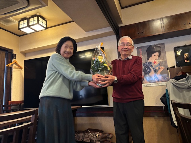 賑やかな雰囲気の中、本年10月まで10年以上に渡って部会長を務められた天明さんにメンバー全員から慰労の花束を贈呈しました。