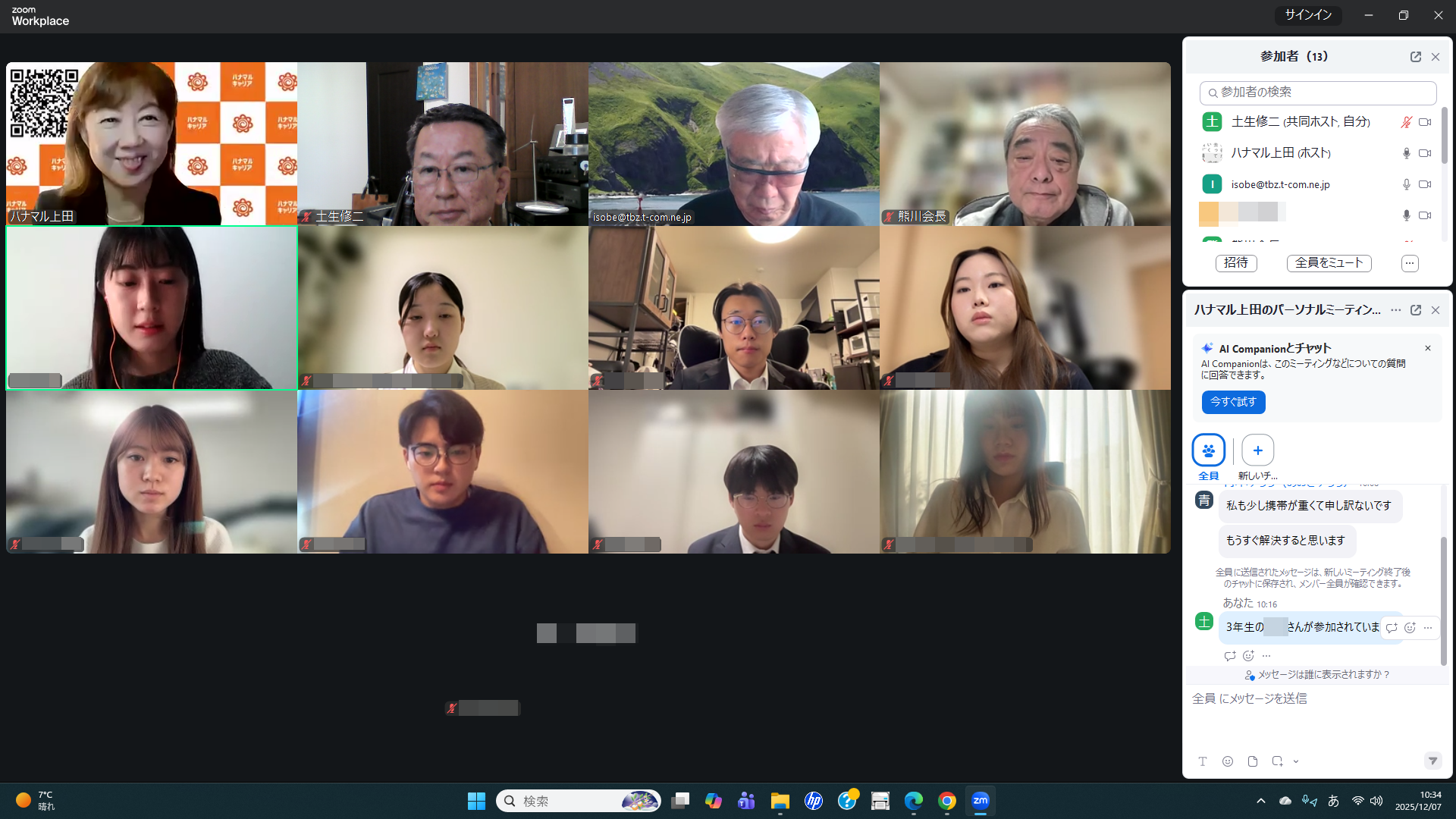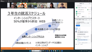 _その後2つのブレイクアウトルームに分け、参加学生から両先輩への質問タイム(上田講師、役員3名は参加せず)を設け、質疑応答を行った。