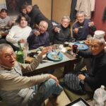 その後は近くの居酒屋「本牧漁亭」に魚を持ち込み、鯵料理に舌鼓を打ちました。同じ店に太刀魚を釣った別のグループがいて、こちらの持つ鯵と向こうの持つ太刀魚の物々交換が成立、唐揚げにした鯵と刺身にした太刀魚を分け合うという一コマも。
