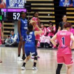 昨年10月に新加入した193cmのシャノン・ティアラ・フルーカーの力感満々のポストプレーが目を引いた。また、やはり我らが早稲女のプリンセス、オリンピアン・本橋菜子(2016スポ)が登場すると、攻撃・ディフェンスのフォーメーションが格段に上がった。