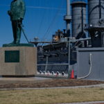 腹ごなしの散歩を兼ねて三笠公園へ…。15分ほどで「三笠」が見えてきました。「三笠」は明治38年(1905年)の日本海海戦でロシアのバルチック艦隊を破った日本連合艦隊の旗艦で、イギリスに発注した当時最新鋭の戦艦でした。かつてNHKで「坂の上の雲」(司馬遼太郎作)が放送されました。そのハイライトが日本海海戦であり、ご記憶の方も多いことでしょう。