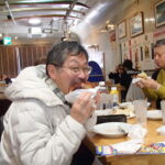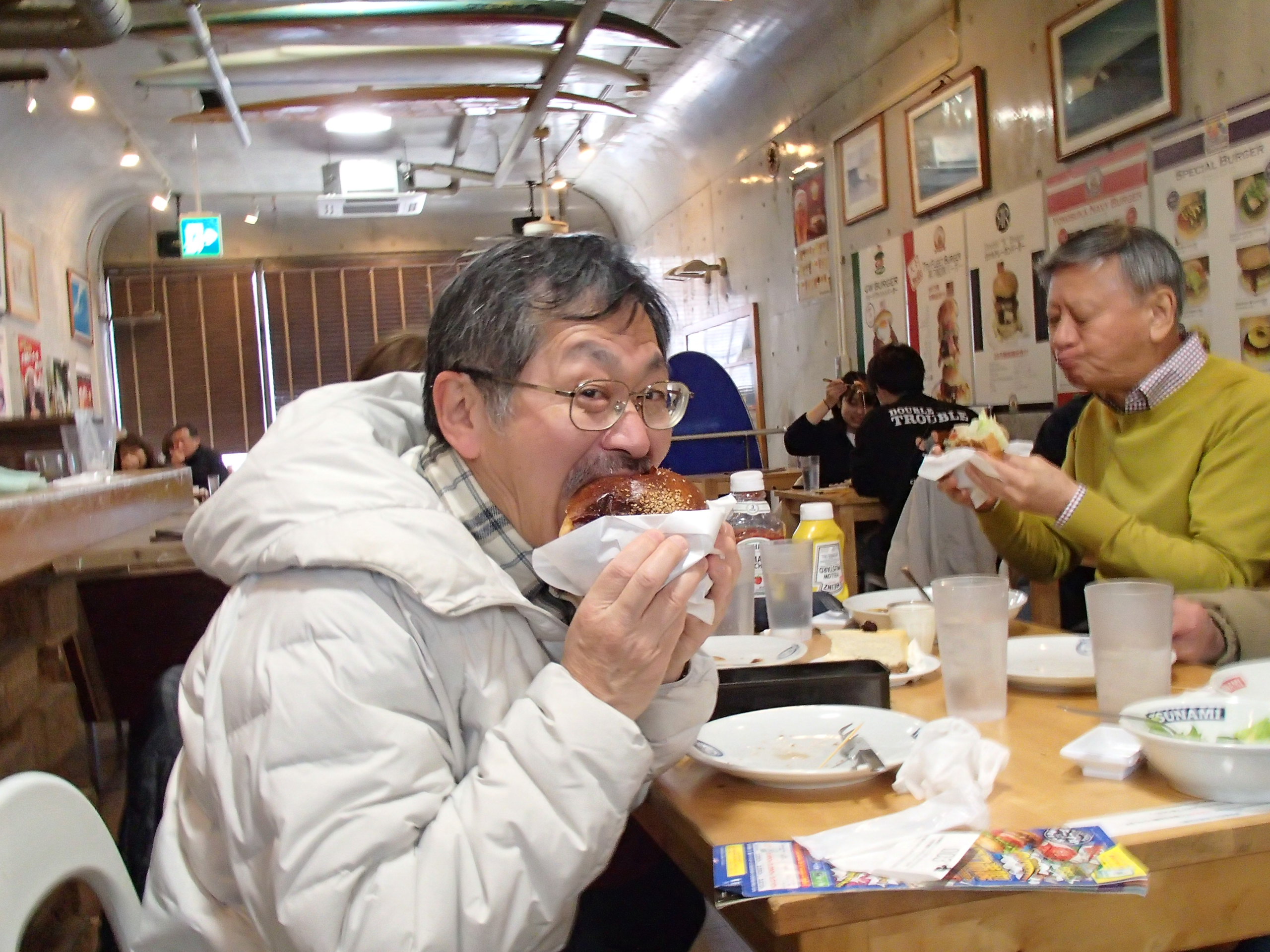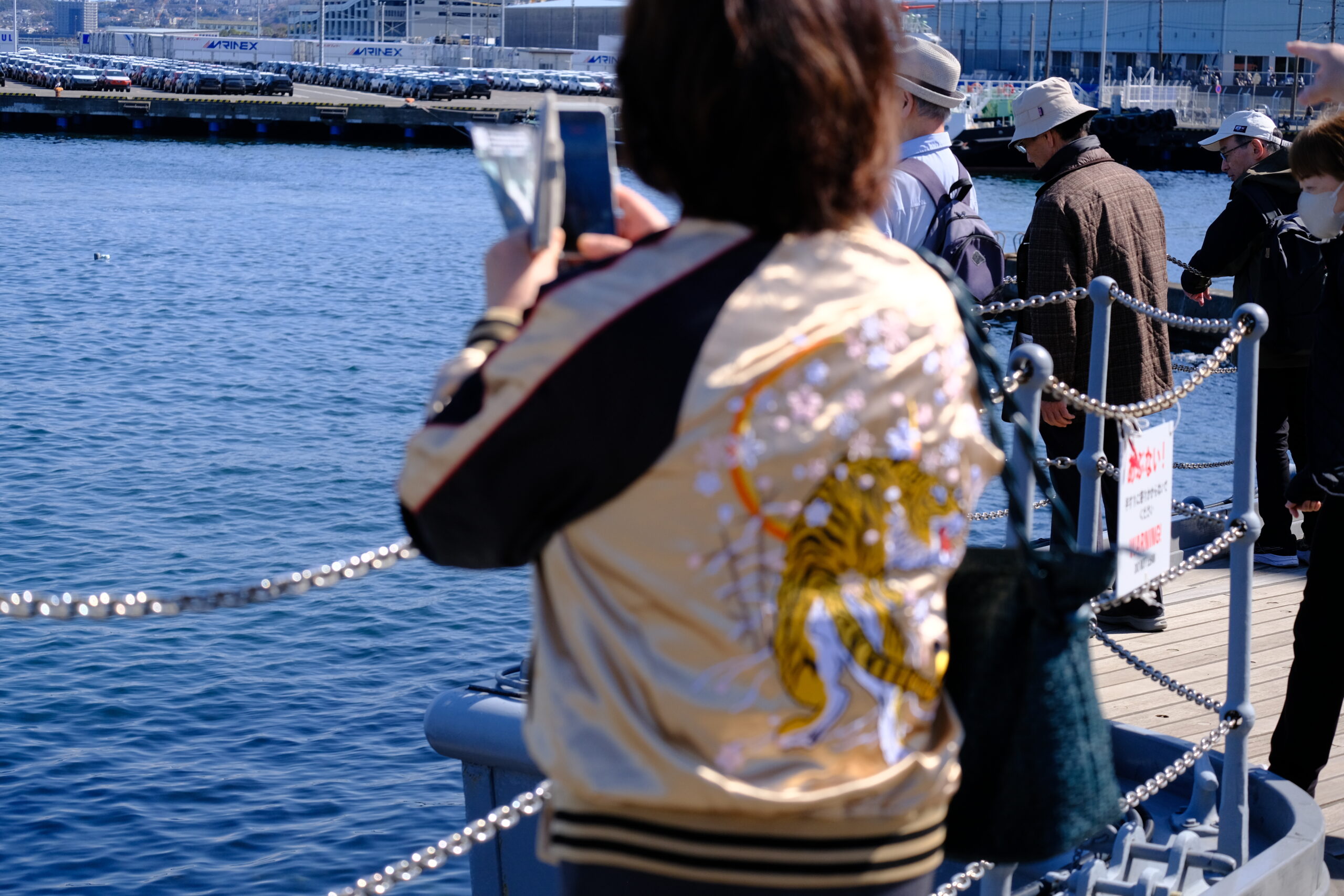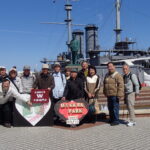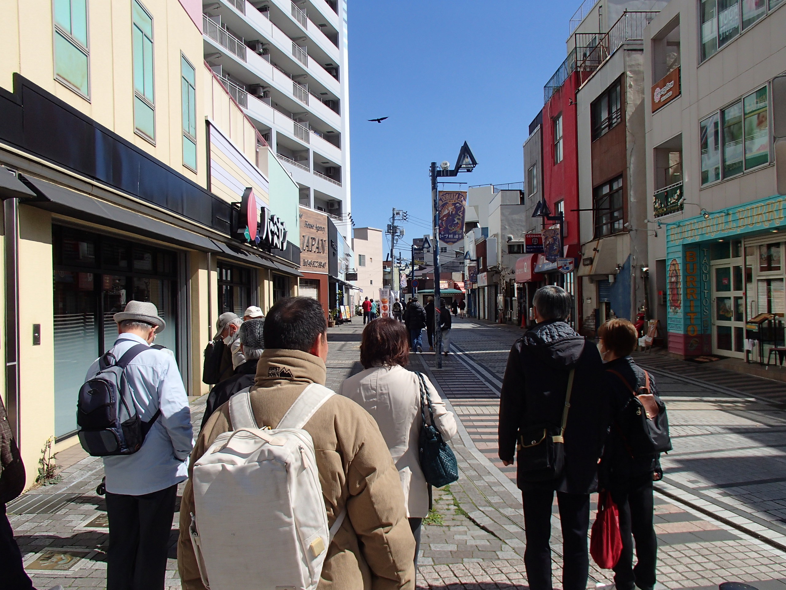 3月15日に横須賀の記念艦「三笠」を見学してきました。参加者は12名、まずは有名なドブ板通りで早めの腹拵えを…著名なお店で海軍カレーやネイビーバーガーをいただきました。さて私が食べたハンバーガーのデカいこと!カブりつくのに顎が痛くなりました。店を出たあと、お隣のジャンパー屋さんで背中にトラが吠えるド派手なスカジャンを買う人も…。ご贔屓の阪神タイガースの試合に着ていくそうです。